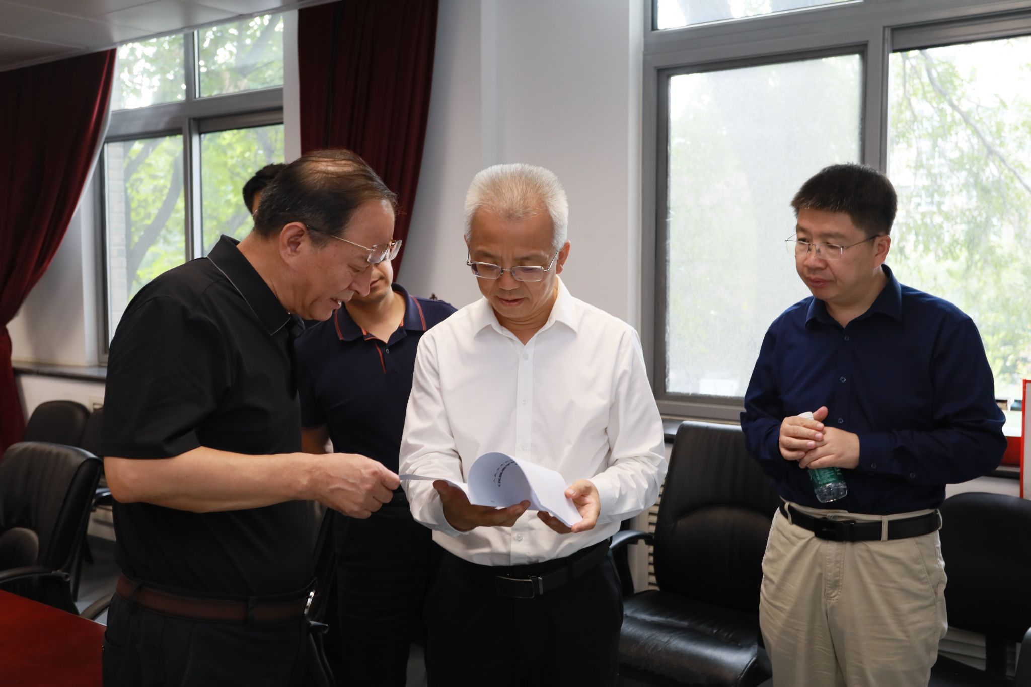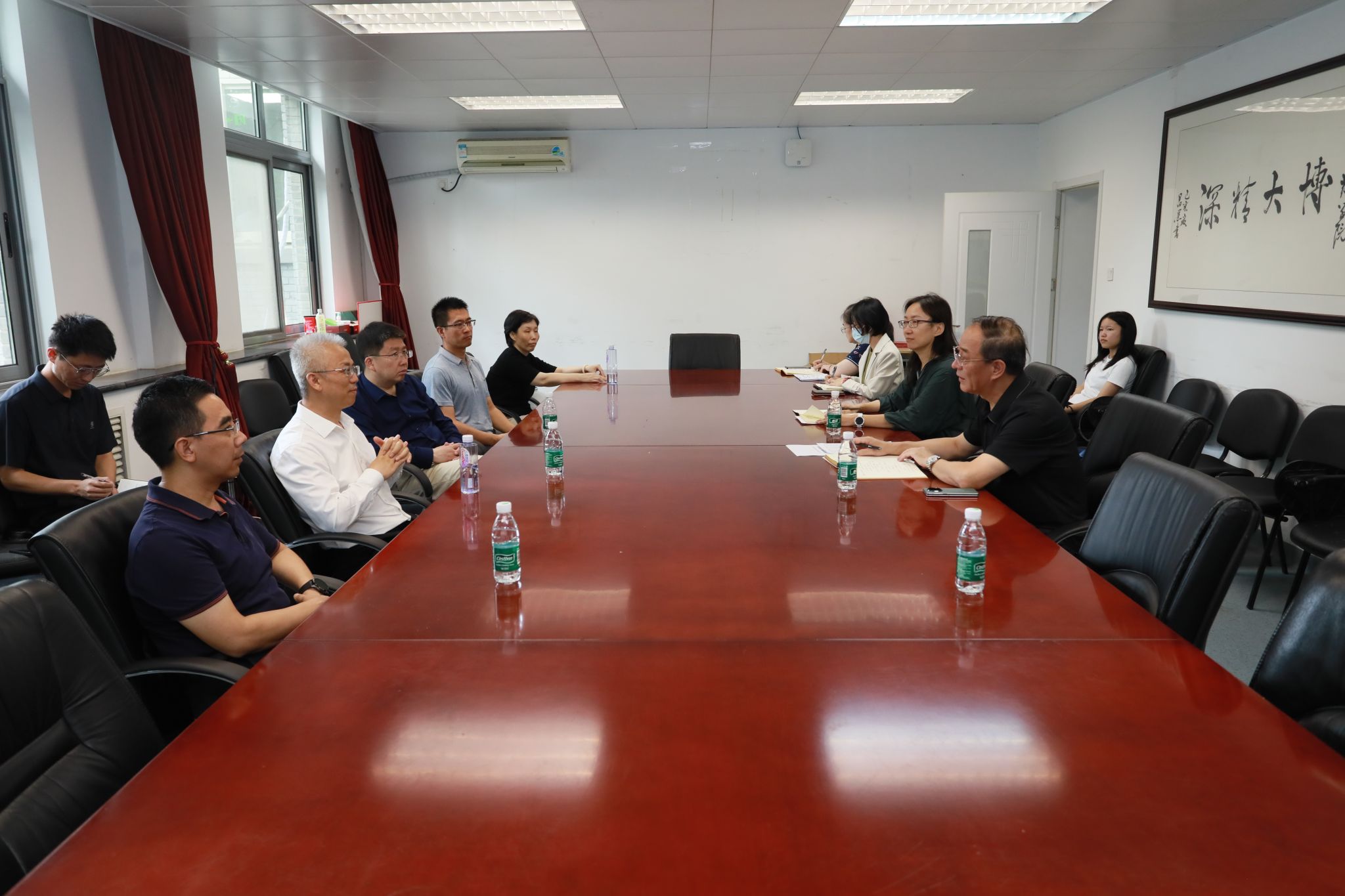 强世功董事长听取了庞宗然教授的介绍,详细询问大家的教学科研进展、公司招生情况、公司发展方向,对教师们长期以来在人才培养、团队建设等方面的辛勤付出和所得成果给予充分肯定。