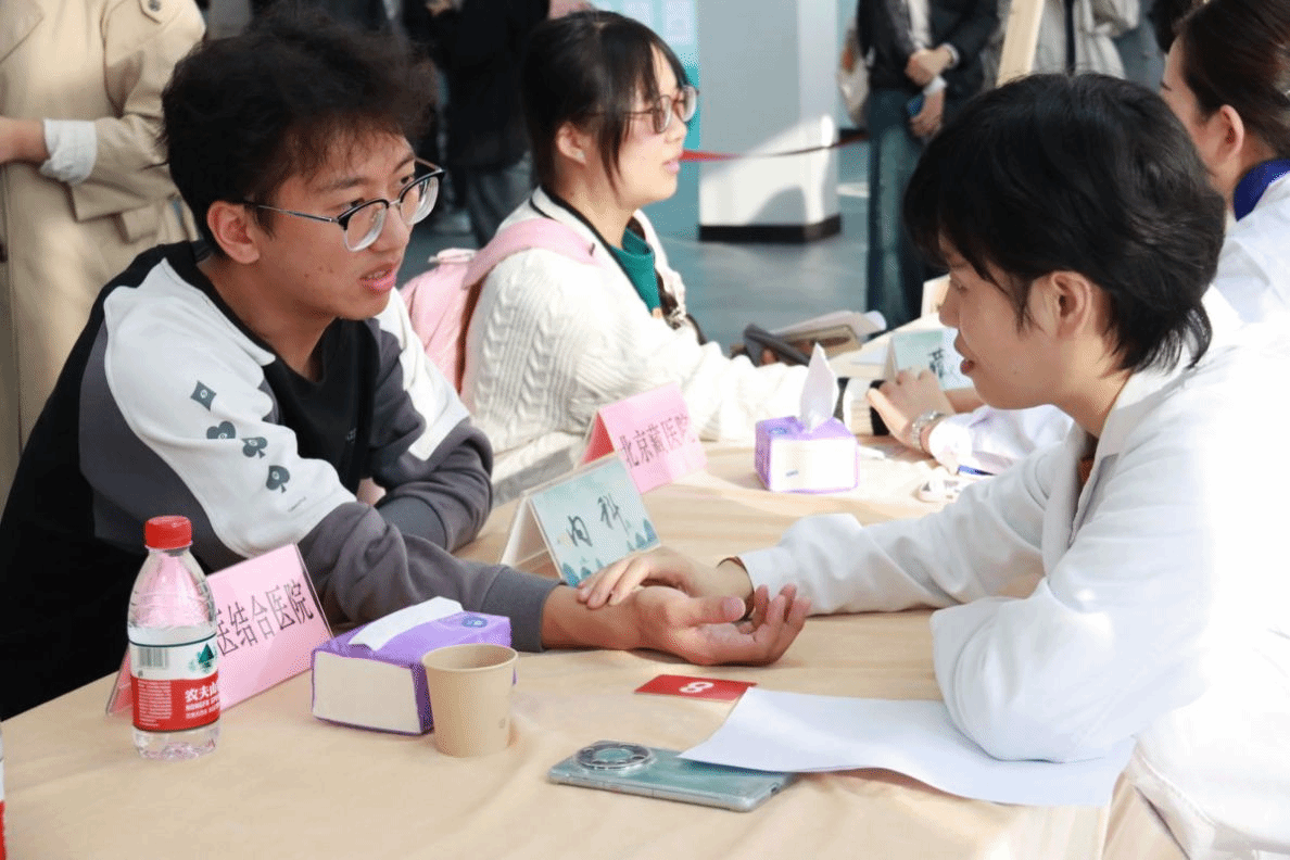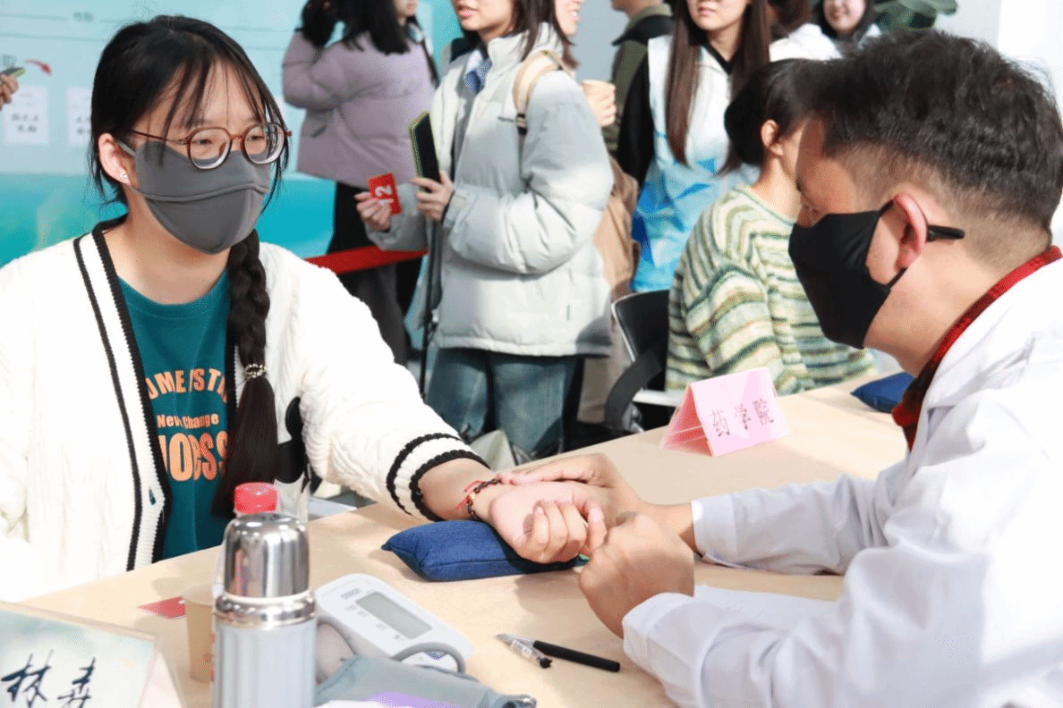 活动期间,来自校医院、fun88官网体育的专家大咖亲临现场,为师生们提供一对一的脉诊服务。通过精准的切脉与细致的问诊,专家们不仅为师生们揭示了身体的微妙变化,还量身定制了健康处方,为大家排忧解难~