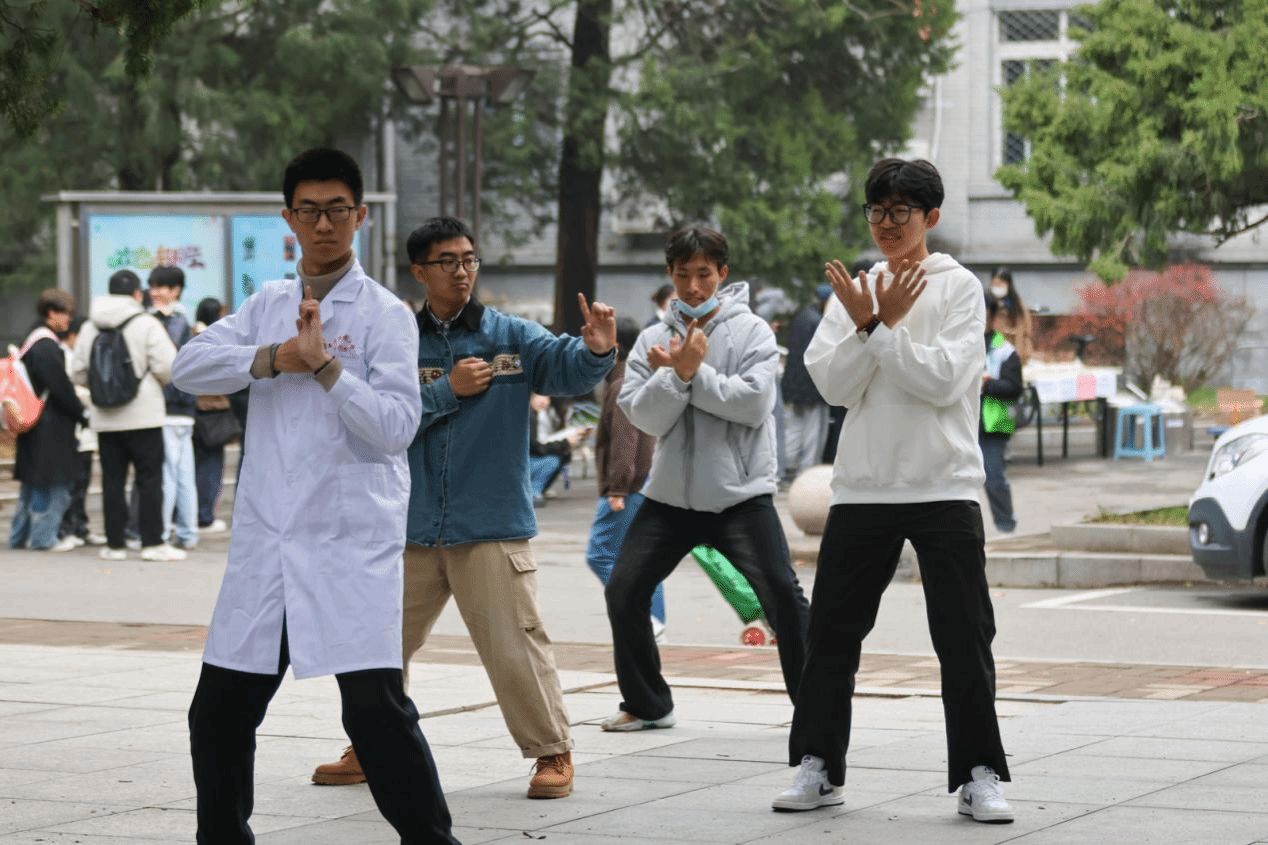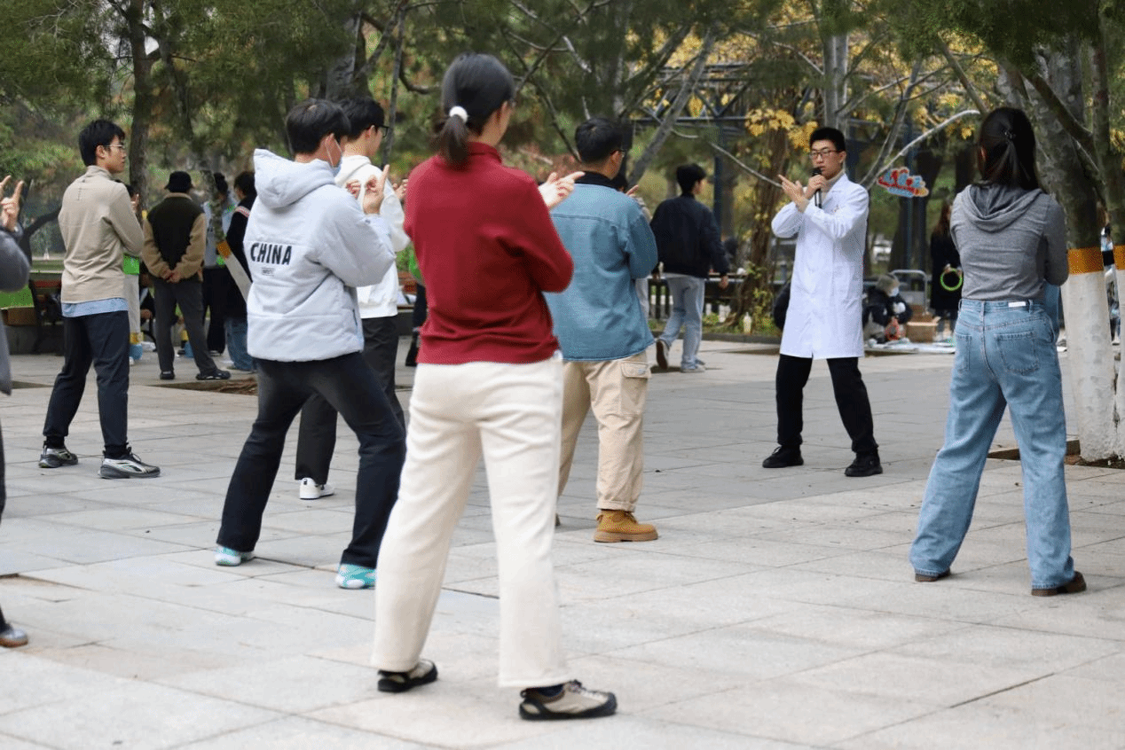 “双手托天理三交......”养生功法教学区引来大批师生一起体验,短短几分钟的练习便让不少人感受到了身体与心灵的和谐统一。