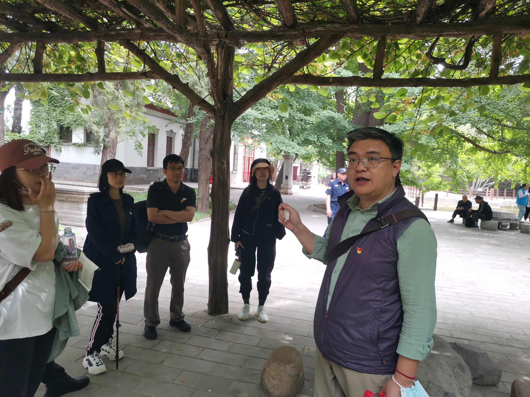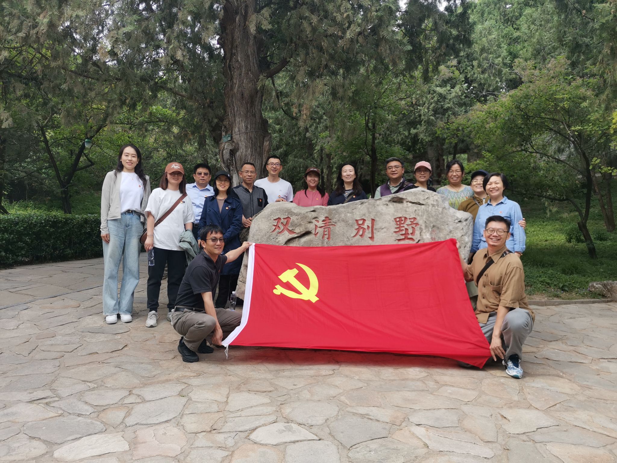 读书班集体前往香山革命纪念地实地研学,瞻仰双清别墅、来青轩等革命旧址,瞻仰毛泽东同志等时任中共中央领导人当年的办公居住地,深切缅怀革命先辈,重温“进京赶考”之路。教工党支部书记裴凌鹏进行领学和讲解。