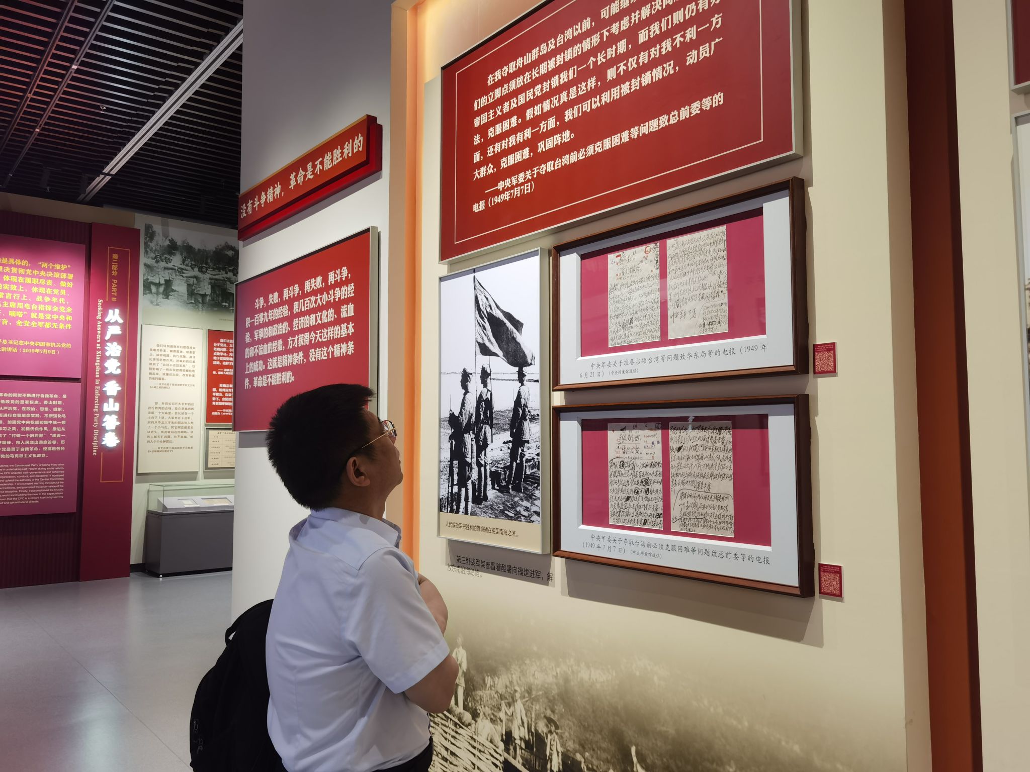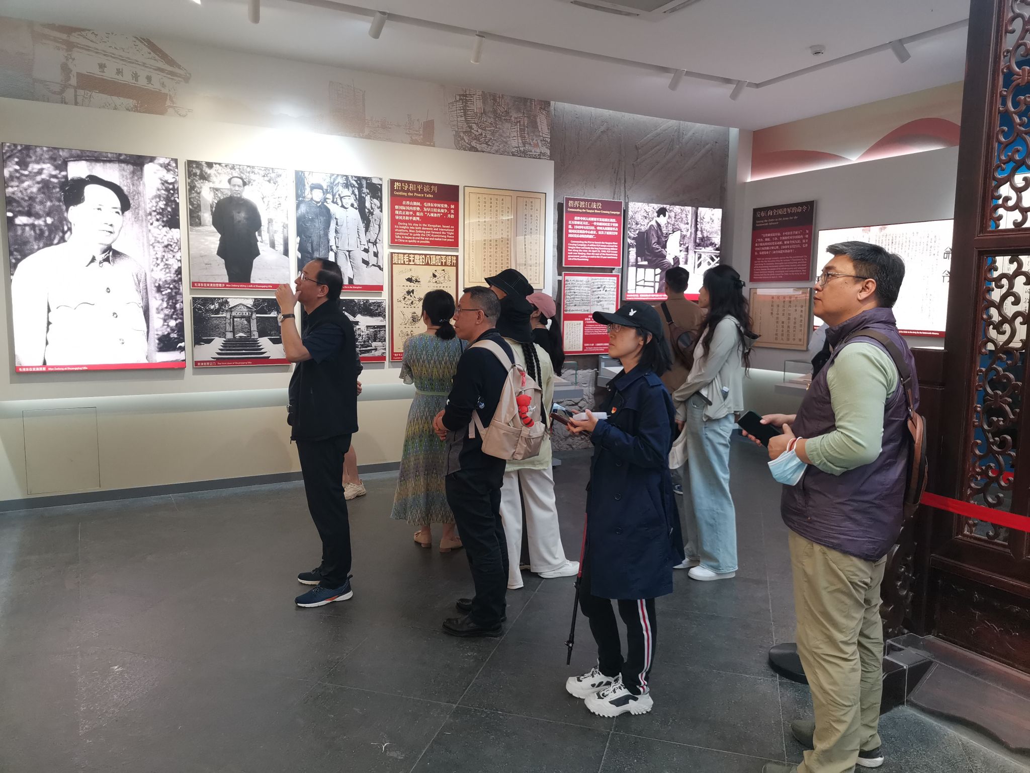 在香山革命纪念馆,读书班一行参观了“香山时期中国共产党自我革命实践专题展览”和“为新中国奠基——中共中央在香山”。“我们都希望考个好成绩”“全党同志务必不忘初心、牢记使命,务必谦虚谨慎、艰苦奋斗,务必敢于斗争、善于斗争,坚定历史自信,增强历史主动,谱写新时代中国特色社会主义更加绚丽的华章”……老师们观看珍贵详实的历史照片、文物、档案及视频,驻足参观、细细品读,不时诵读展览中的原文金句,学习回顾了中共中央在香山期间领导全国各族人民完成民族独立和人民解放的光辉历程,接受深切的精神洗礼和党性教育。