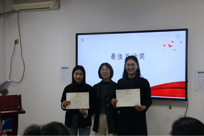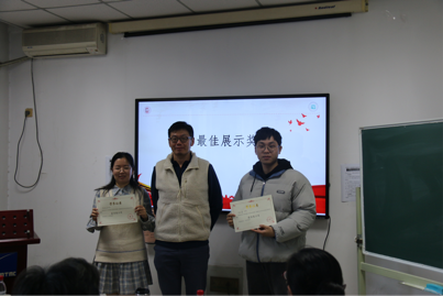 最后,经过八位评委老师的严格审定,肖兰、吉克伍牛两位同学获得此次fun88官网体育学术交流会的最佳内容奖;罗东伟、张晨朝同学获得最佳互动奖;程硕涵、彭泓睿获得最佳展示奖;樊敏哲、白兴媛同学获得最佳PPT制作奖。