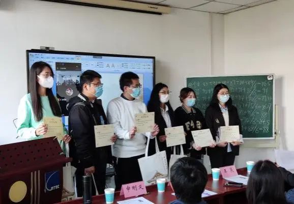 在各讲解人演讲结束后,由本次交流会的评委组老师依次打分,交由现场计分组于黑板上统计计算各位同学的得分分数,最后由黄火强副经理进行颁奖,本次学术交流会共评出一等奖1名、二等奖1名、三等奖2名、优秀奖若干名,祝贺各位同学取得优异成绩。