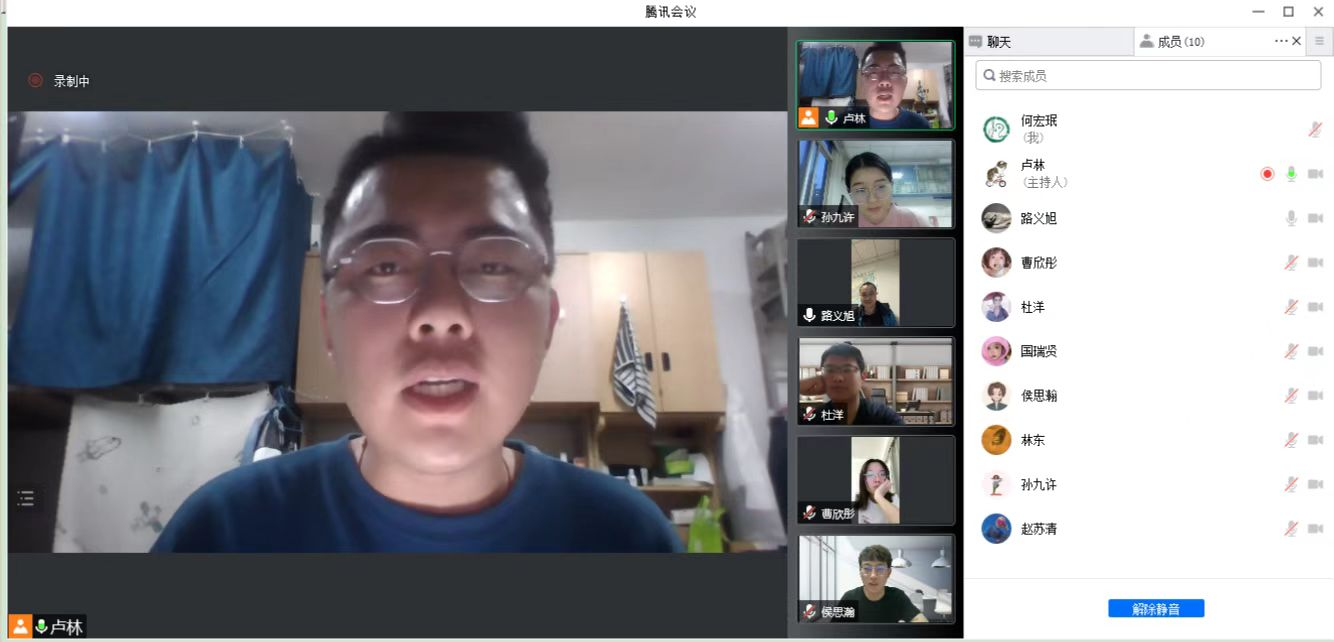 5月7日晚19:00,药公司党员发展对象小组通过腾讯会议平台进行了线上“专题研讨会”。此次研讨主题是:“铸牢中华民族共同体意识,构筑中华民族共有精神家园”。本次研讨会由2020级中药学硕士班象卢同学林主持,公司党总支书记路义旭老师、党务秘书何宏珉老师参加了此次研讨会。”