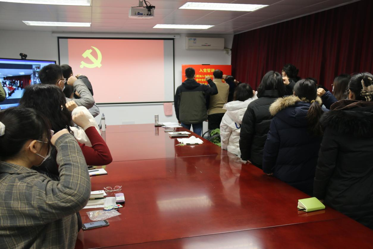 2022年1月5日上午,fun88官网体育药公司党员入党宣誓仪式在1号楼二层配楼会议室隆重举行。药公司党总支书记路义旭、副书记黄火强、党总支组织委员何宏珉出席本次入党宣誓仪式会议由黄火强副书记主持。参加此次活动的还有全体fun88官网体育新老员工党员以及入党积极分子。此次活动采取线上线下相结合的方式,不在校的员工通过腾讯会议参会。
