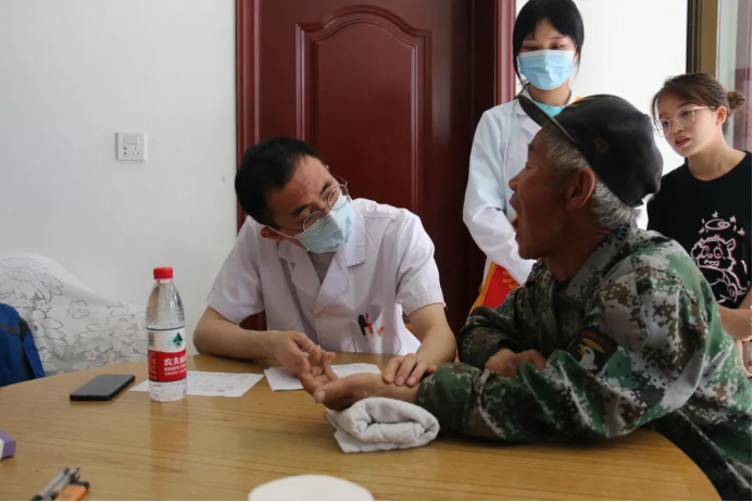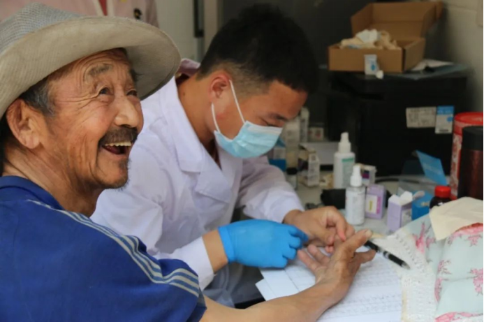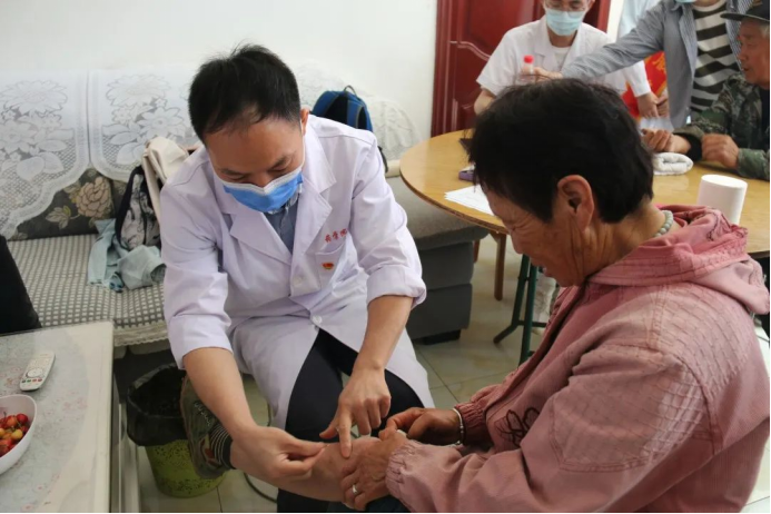 公司李林森老师仔细问询了在场村民的健康状况。了解到村民们多有高血压、糖尿病等疾病,他向村民们给出许多专业的建议,并现场教授了一些针对高血压和糖尿病的中医保健方法。