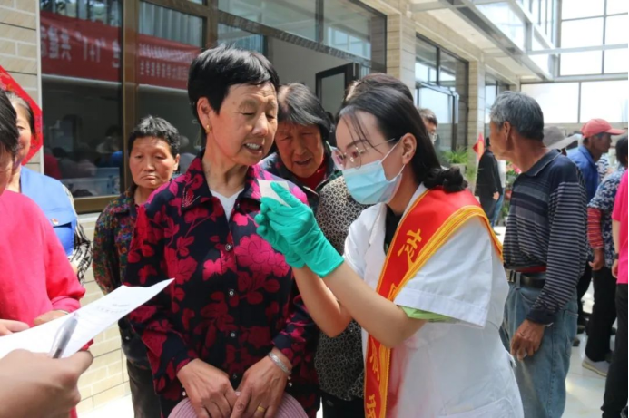 随后,特邀义诊医生和员工党员为村民们展开义诊和身体指标测量工作。医师问诊台前和身体指标测量仪器前站满了村民。公司师生以饱满的热情、专业的态度,得到了村民的一致赞扬。