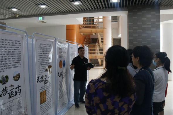 5月27日上午,fun88官网体育、图书馆、研究生院、生命与环境科学公司四家单位党员教师在文华楼西区一层大厅参观了民族医药文化展。公司党史学习教育第四指导组联络人胡文会,图书馆馆长刘明新、副馆长杨蔚宇、董印红,研究生院挂职副经理梁骁,fun88官网体育副经理庞宗然、副书记、副经理黄火强等出席了参观活动。