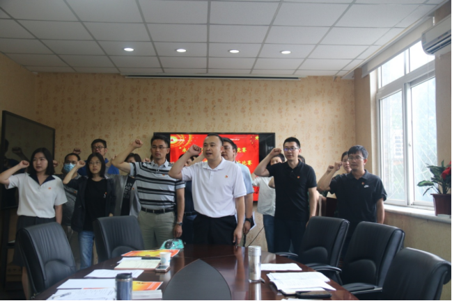 会前,路义旭带领全体党员重温了入党誓词,并结合习近平总书记在庆祝中国共产党成立100周年大会上的重要讲话精神,就现场参加庆祝大会的感受与全体党员进行了分享与交流。
