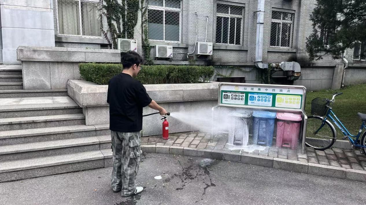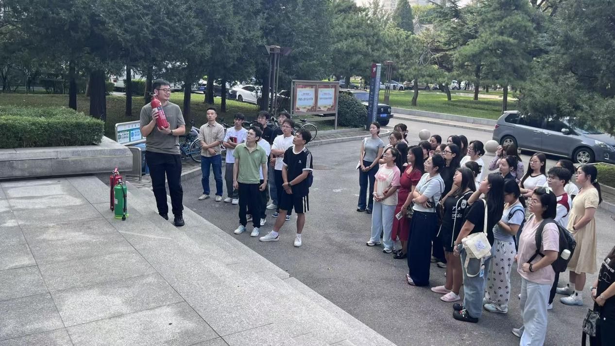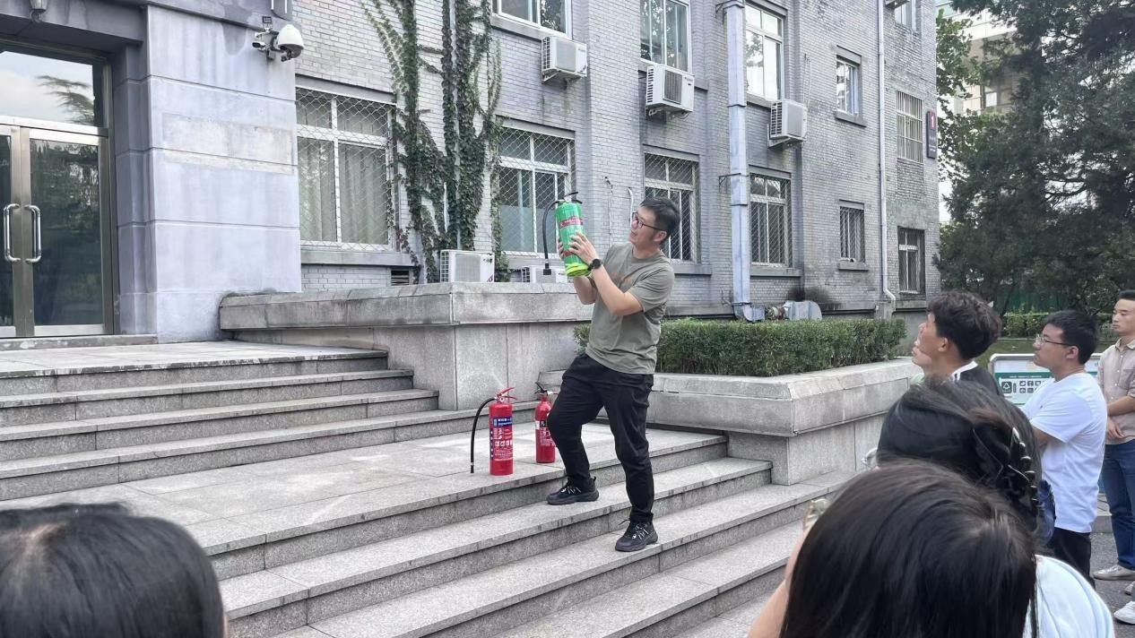 在实操环节,同学们在谷雨龙老师指导下按“提,拔,握,压”四字口诀进行实操演练。大家认真练习、积极互动,有效提升了器材使用和初期火灾应对能力。