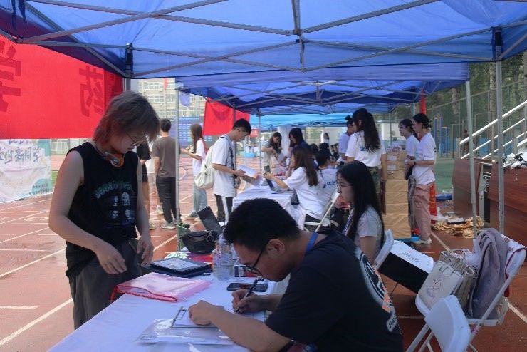 志愿者们洋溢着笑容和热情迎接新生,耐心解答新生们的各类问题。