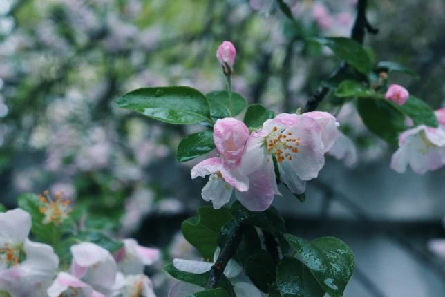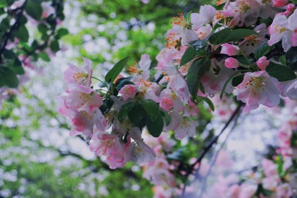 这几年,因为“知否知否,应是绿肥红瘦”让我们对海棠的印象又多了几分,在旧时空里,人们也偏爱称它为“解语花”。人们爱它“海棠未语,梨花先雪”的从容慢慢,爱它“杨柳风柔,海棠月淡,独自倚阑时”的离愁别绪,它是浮生万象里的温柔多情,又有从容大气的色彩。比起晴天时的海棠花,我更爱雨中的,海棠半欲开,仍朵朵、红深红浅,匀点点、胭脂未遍。