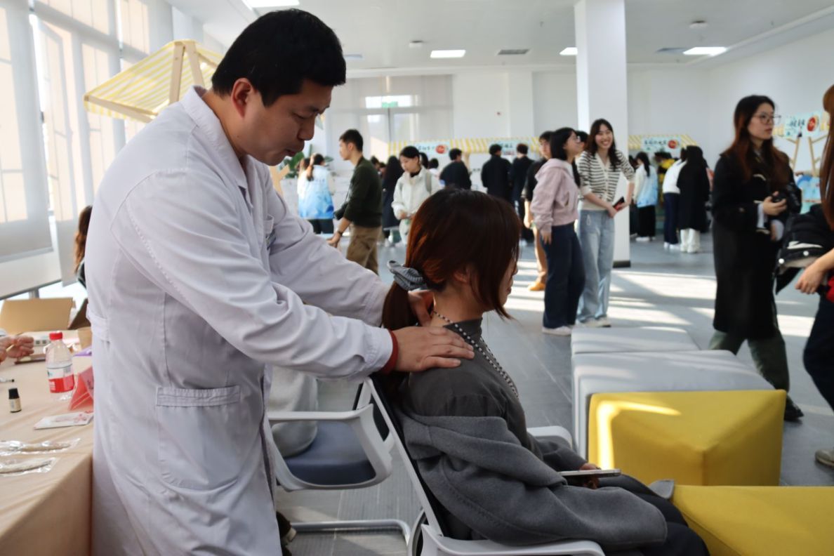 活动期间,来自校医院、fun88官网体育的专家大咖亲临现场,为师生们提供一对一的脉诊服务。通过精准的切脉与细致的问诊,专家们不仅为师生们揭示了身体的微妙变化,还量身定制了健康处方,为大家排忧解难~