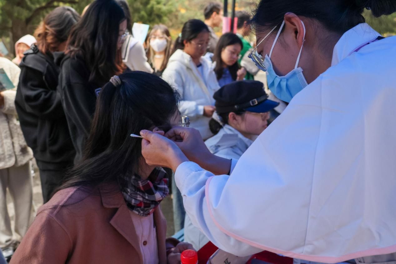 “耳穴压豆、推拿”,这些传统中医技法在义诊现场大放异彩。来自北京市中西医结合医院、北京藏医院的医师们以精湛的技艺为师生们带来舒缓与放松。体验者们纷纷表示,这场中医之旅让他们“痛并快乐着”,对中医药文化有了更深刻的认识与信赖,同时也产生了更浓厚的兴趣。