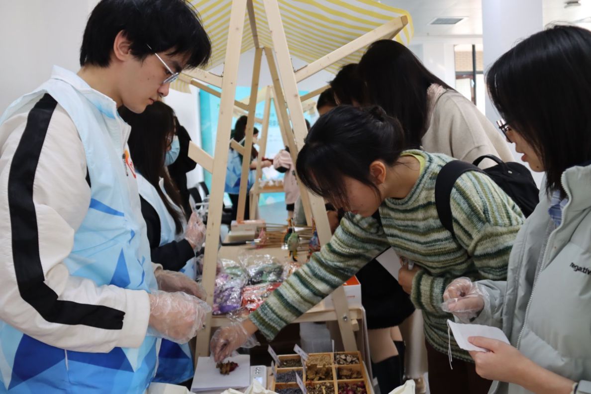除了义诊服务,我们还设置了养生文化体验区与游戏互动区。师生们亲手制作秋冬“养生香囊”,品尝暖心“中药茶饮”,在丰富的趣味游戏中学习中医药知识,感受传统文化的无限魅力。