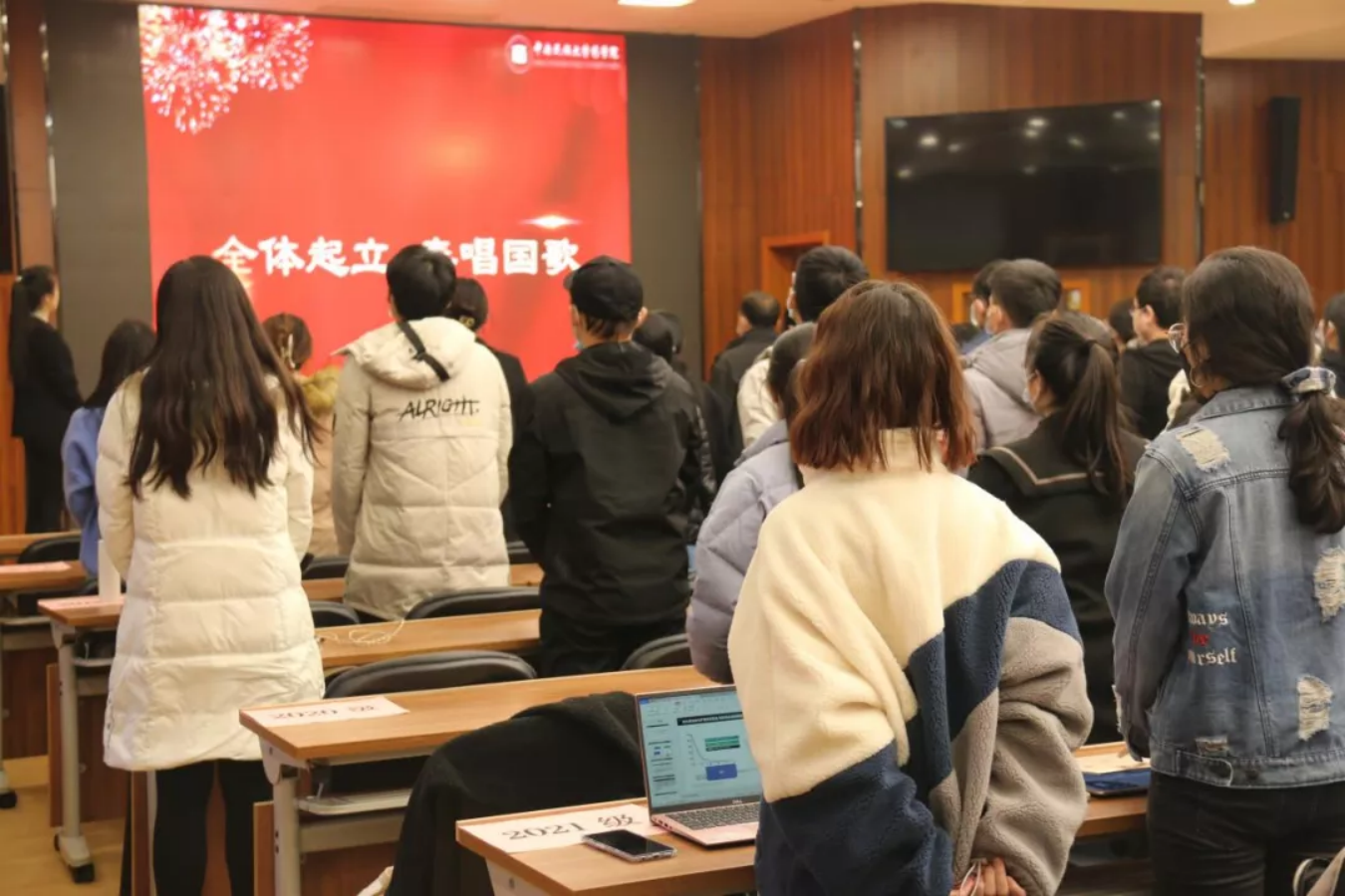 会议开始,全体起立,奏唱中华人民共和国国歌。