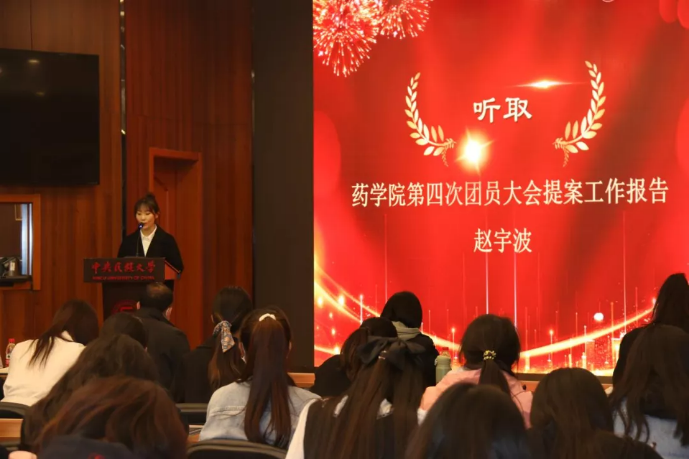 前任团委委员赵宇波同学代表提案组作了《fun88官网体育第四次团员大会提案工作报告》。