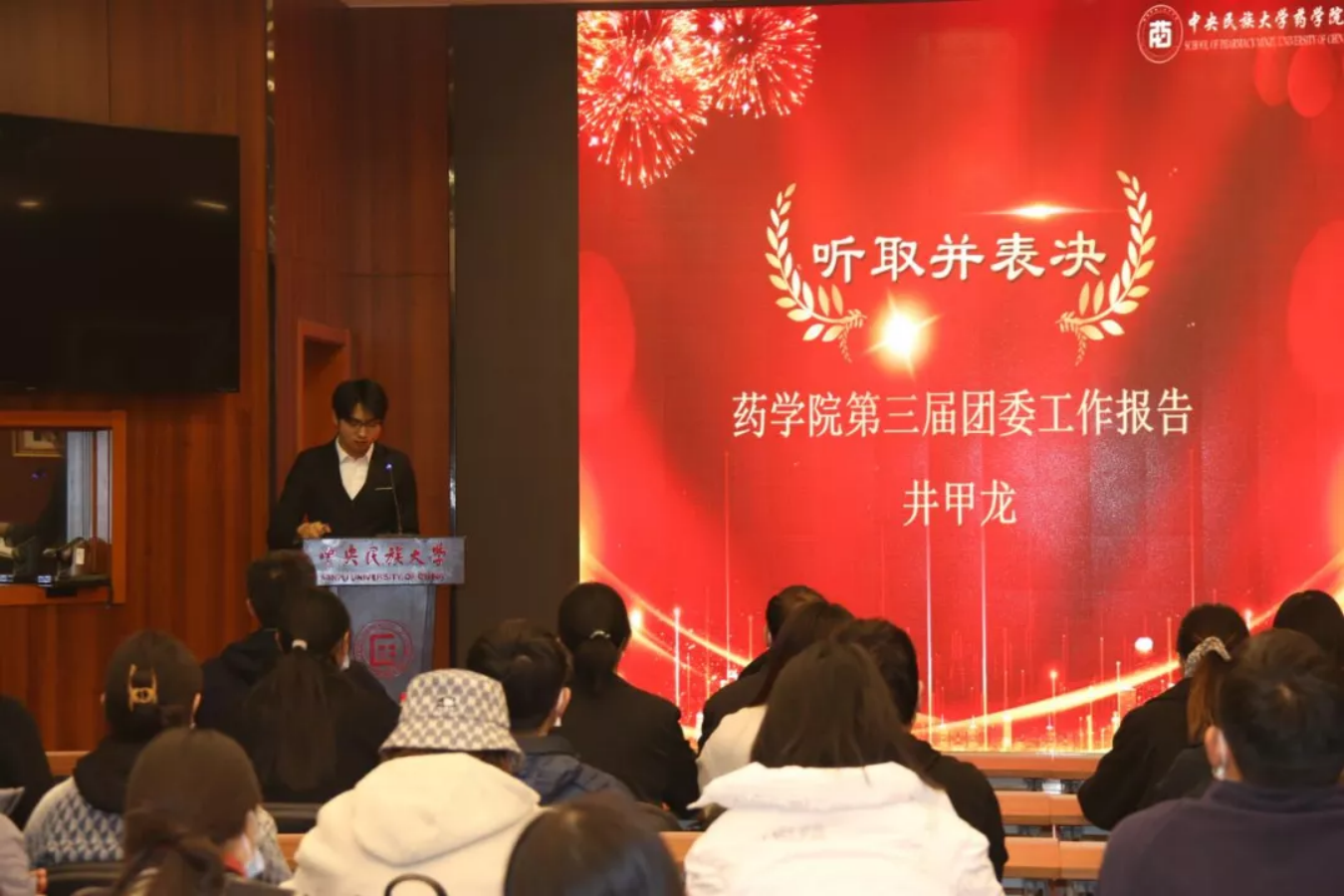 前任团委副书记井甲龙对团委本科生工作做了报告,分享了工作经历与收获,对团委的未来表示衷心的祝愿。