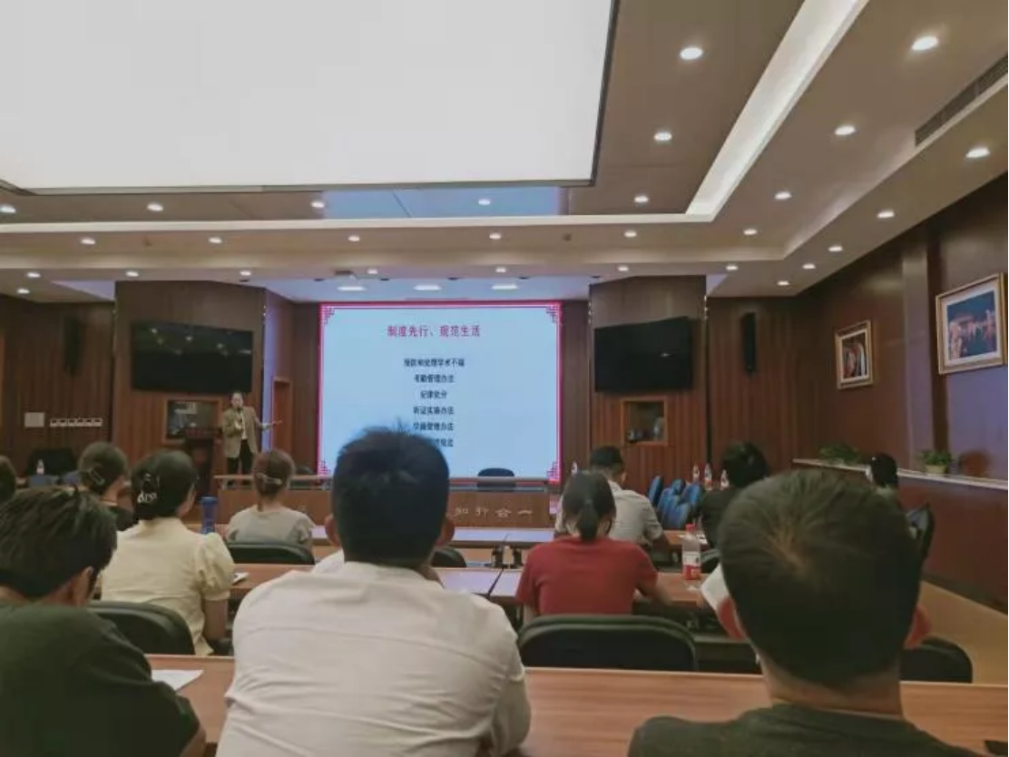 作为即将全程在工作和生活中陪伴大家的萌新辅导员,韩老师对大家进行了思想政治教育,鼓励大家秉承“美美与共、知行合一”的校训实现个人价值,奉献国家和社会;接着韩老师为大家介绍了校园生活的方方面面,传达公司疫情防控常态化的日常管理措施,讲解了公司为民大学子提供的各类奖助政策,并加强对同学们的安全意识及心理健康教育等。