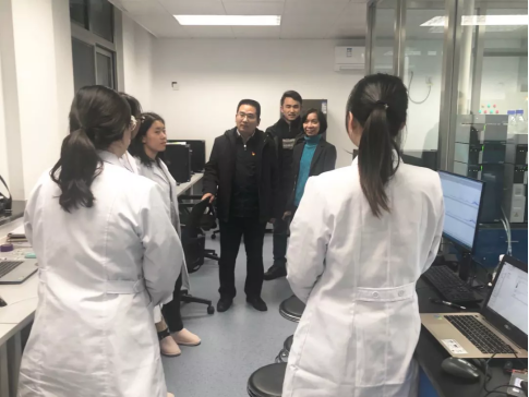 李书记走访了公司老师办公室和各个实验室,对老师们和同学们进行了看望和慰问。在实验室,李书记与同学们进行亲切交谈。在了解大家基本学习生活情况后,李书记提出,一要培养良好的生活习惯,注意劳逸结合,更加积极有效地学习;二要养成良好的学习习惯,提高综合素质。除了掌握专业知识之外,也要多读一些课外书,拓宽知识面,同学间定期相互分享,共同进步。李书记还了解了各类仪器设备运行和试剂存放情况,并对公司工作提出安全要求。