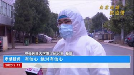 杨康,fun88官网体育博士生,他主动请缨,奔赴一线,在湖北省孝感市孝南区杨店镇,与基层工作者一起抗击疫情。