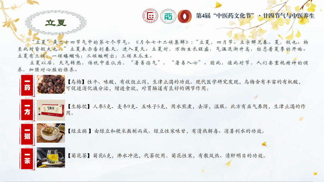 春饮花茶祛寒邪、夏饮绿茶除暑湿,到秋饮乌龙润燥气、红茶普洱御寒冬——96道药膳茶饮,将国人养生与四时寒暑的关系娓娓道来,让同学们纷纷感叹“学到了”。