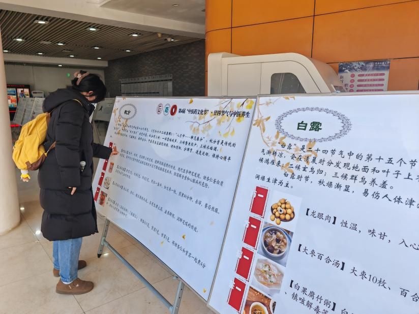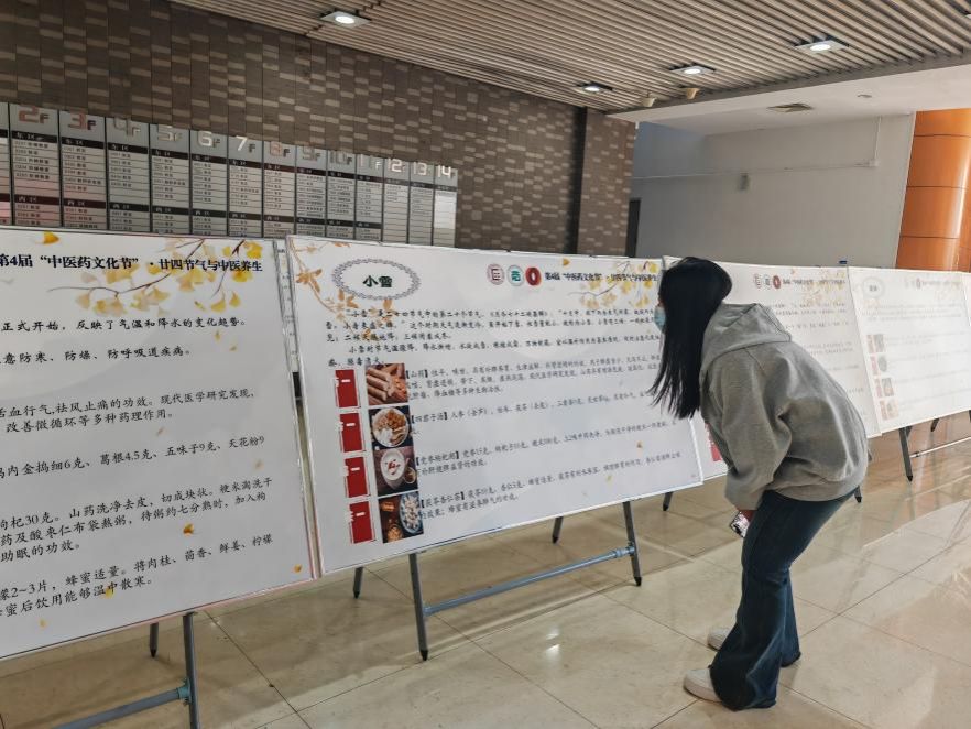 展览在丰台校区老员工活动中心一楼信息化大厅、海淀校区文华楼大厅同时展出,以二十四节气为脉络,介绍了各个节气的特点、饮食养生、运动养生及情志养生等知识——