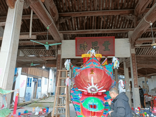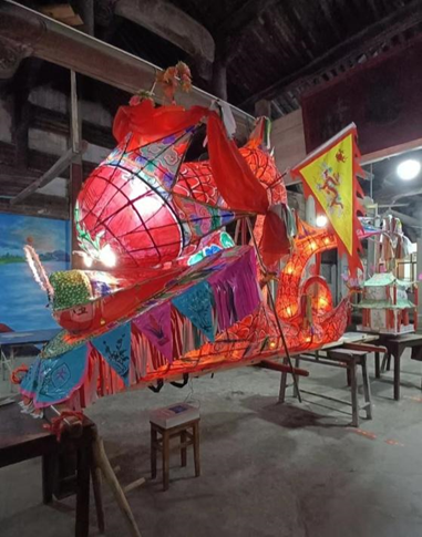 创作理念:年味在“浙”里—迎龙灯。浙江东阳迎龙灯习俗是一项富有地域文化特色的传统民俗文化活动,通过这个活动,人们可以祈求丰收、平安。东阳方言中,“灯”与“丁”同音,在迎龙灯活动中,每家每户都会出壮丁一人或以上,随带板凳一条和灯笼一个,将各家的板凳连接起来,按上灯笼,加上龙头和龙尾,就形成了一条长长的板凳龙,专名为“桥灯”。龙灯越长,说明村庄人丁越兴旺。