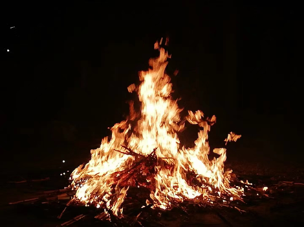 创作理念:年味,是大年三十晚上一大家人团圆在一起,围着熊熊燃烧的柴火垛烤火,观看美丽烟花的幸福。