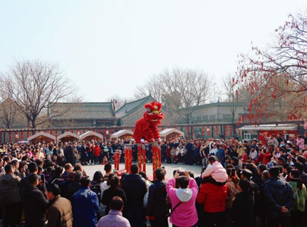 图三:齐得儿隆咚呛!为迎接春节到来,人们敲锣打鼓,舞狮庆祝,舞狮被认为是驱邪避害的吉祥瑞物,每逢节庆或有重大活动必有舞狮助兴,长盛不衰,历代相传。舞狮者翻滚跳跃,活灵活现,彰显着中国人民驱邪避害,增吉纳福的美好愿景。