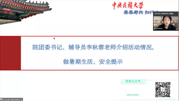 接着,李秋蓉老师回顾了上学期为丰富和调节同学们居家抗疫学习生活,举办和开展的各类团学活动和参与情况,着重强调了暑期生活、安全事宜,提示大家严格遵守公司和当地疫情防控规定,特别指出要保持身心健康,注意人身财产安全、交通出行安全等。同时介绍了2019届、2020届毕业生的升学、就业情况,叮嘱同学们要按照周老师的指导,有计划安排时间,劳逸结合,奋斗冲刺。