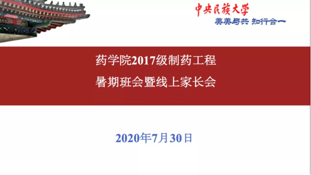 为进一步拓宽员工思想政治教育工作渠道,切实关心关爱疫情特殊背景下员工学习生活和家庭特殊困难,增强工作的针对性与实效性,7月30日下午3点,2017级制药工程班举行暑期班会暨线上家长会,班导师周文斌老师出席,全体同学和家长参加,会议由院团委书记兼辅导员李秋蓉老师主持。
