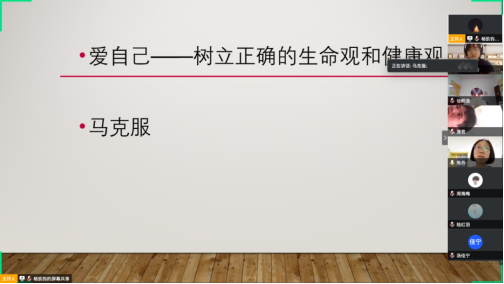 朱丹老师也分享了自己疫情期间与家人的相处,告诉我们要正视疫情对我们带来的负面影响,积极调整自己,寻找新的生活和学习节奏,并多做尝试,大胆地突破自己。李秋蓉老师为我们朗读了最近在看的书,提到“只有了解生活的意义在于奉献的人,才能够有较大的机会成功地克服困难。”结束之前,临近世界读书日,大家也互相推荐了书目,期待疫情结束之后成为更好的自己!