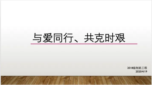 疫情是对我们每一个人的考验,4月19日下午2:00,2018级制药工程班开展“与爱同行,共克时艰”主题班会。班会由班长杨凯钧主持,全体同学通过“腾讯会议”参加班会。班会还邀请了辅导员李秋蓉老师、班导师朱丹老师。