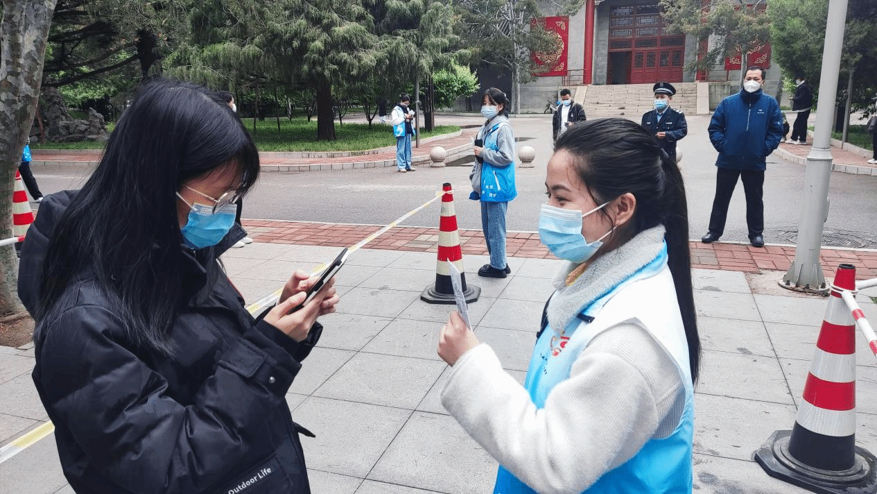 餐厅和超市是重点人员聚集区。为了确保同学们安全用餐,我与其他志愿者们引导同学们佩戴口罩,科学错峰就餐。我认为众志成城,共克时艰是每一位民大人心中共同的信念。很荣幸能够作为志愿者为公司抗疫做出⼀份贡献、做了⼀点⼒所能及的事情时,心里会觉得很幸福,并在志愿活动中找到了自己的价值。也衷⼼希望此次疫情能够早点结束!能为公司疫情防控工作献出自己的一份绵薄之力,希望在新时代书写好民大精神的新篇章。