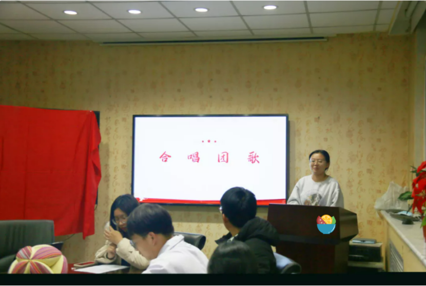 首先,进行唱团歌环节,线上线下团员共同起立合唱团歌。