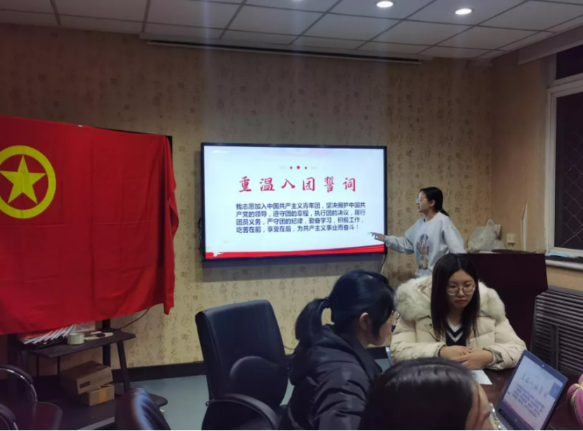 最后,团支部全体团员一起重温入团誓词,至此本次团支部组织生活会圆满结束。