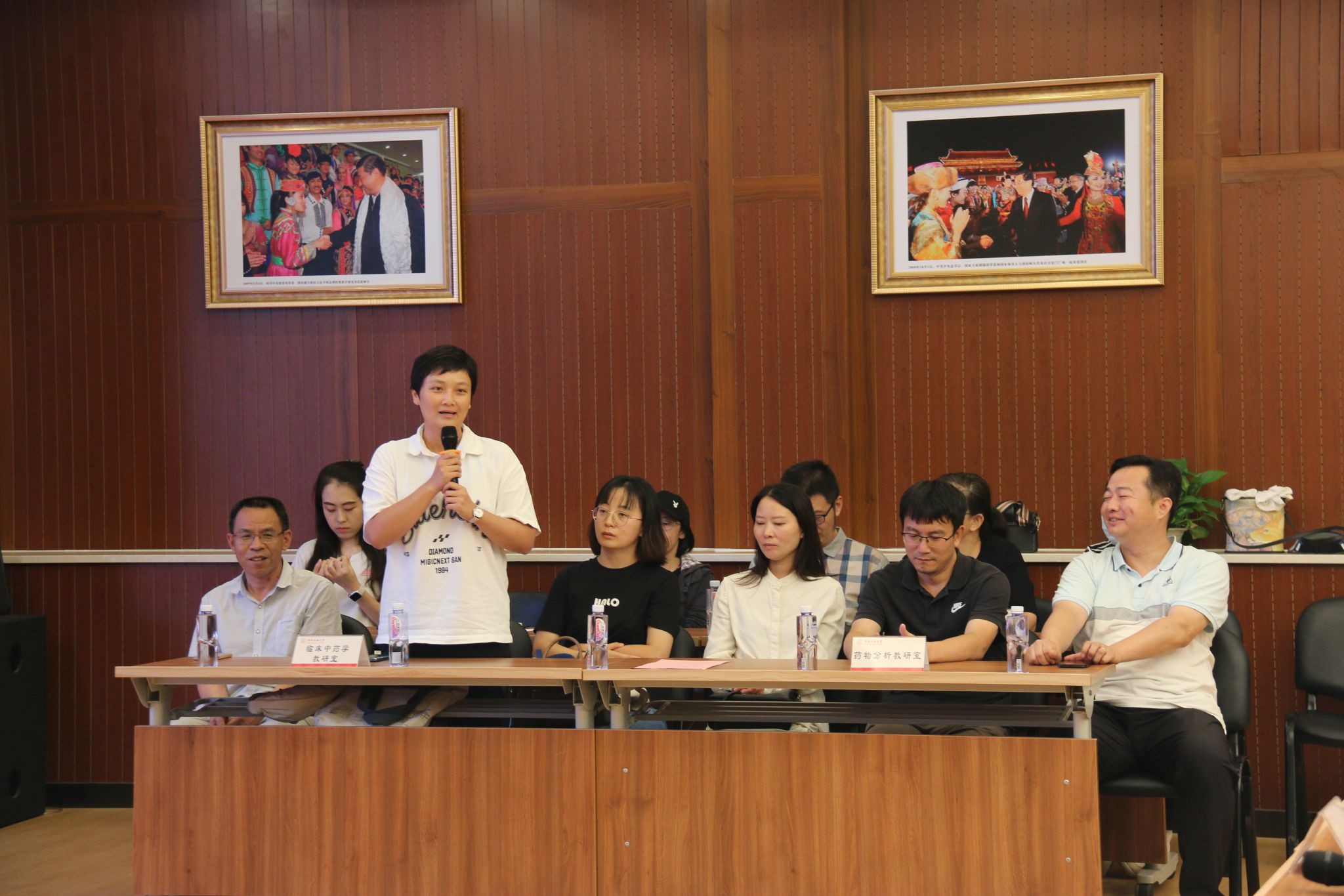 接着,由公司各教研室,包括中药化学与生药学教研室唐丽副经理、药物分析教研室周文斌主任、药理学教研室张宇昕主任、基础医学教研室乌恩奇主任、临床中药学教研室鲁碧楠主任介绍了本教研室的成员构成以及各自的研究方向和内容,实验教学与管理中心谷雨龙主任向大家介绍了中心事务,公司办公室/党团与员工工作办公室李艳艳主任向大家介绍了办公室的职能及人员组成。