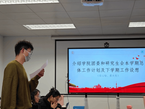 大会第一项,由药公司第六届团委副书记任心怡同学、第七届研究生会执行主席蔡大伦同学依次汇报本学期工作计划及下学期总体工作设想。
