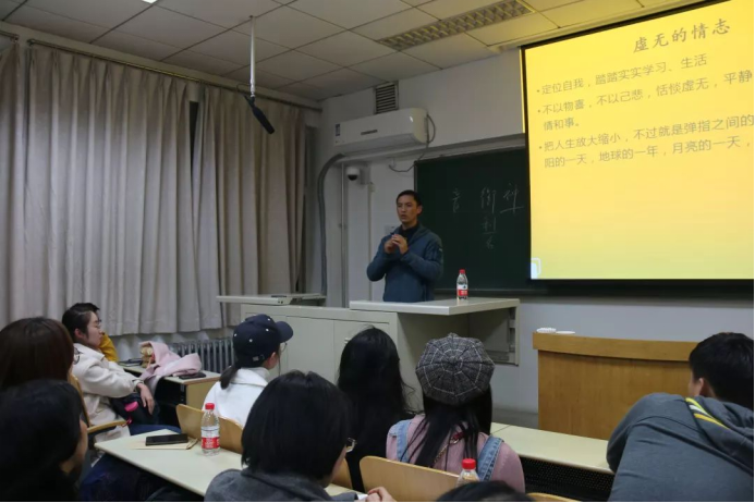 讲座现场,座无虚席,气氛热烈。李林森老师以中医传统的阴阳五行为基础,详细地讲述了人体的七情与五脏之间的关系,对人的情志与健康进行了细致入微的分析。讲座中,李林森老师引经据典,深入浅出,使用经典古籍中的病例来丰富讲座内容,使原本晦涩的理论知识变得简单明了。李老师提出了“认识自己,调节情绪,解决问题”的调节情绪三步骤,并引用古代哲学中与社会主义核心价值观相契合的观点引导大家积极向上、向善。讲授完毕后,李林森老师还以《红楼梦》《儒林外史》等文学作品中的小故事为病例,请大家运用讲座内容进行分析应用,并对回答进行了点评和说明。