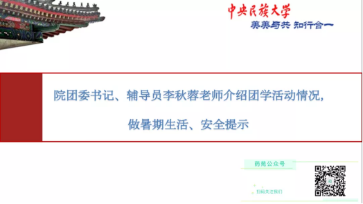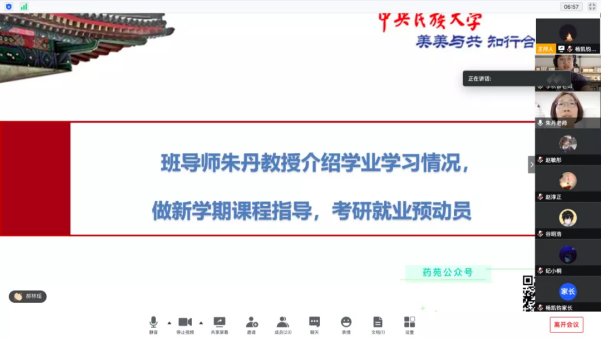 为保障同学们暑期充实平安,提前做好新学期规划,8月1日晚上19:002018级制药工程班“线上家长会暨暑期班会”如约召开,班导师朱丹教授出席,全体同学及家长参会,院团委书记兼辅导员李秋蓉老师主持。