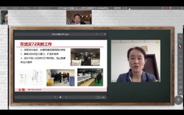 报告会上北京大学第三医院援鄂抗疫国家医疗队队长、北京大学国家援鄂医疗队和同济医院中法新城院区高级专家组成员沈宁教授,北京大学援鄂医疗队“90后”党员代表董锦沛医生为我们讲述了战疫前线的动人故事、感人瞬间,让我们感受到了英勇奋战的医护工作者不畏艰险、冲锋在前、舍生忘死、大爱无疆的奉献精神。董锦沛医生用感人的视频和鲜活的故事给人力量。他还结合自身体会,认为此次抗疫中,体现了制度优势,证明了中国速度,感受了中国温度,彰显了大国担当。