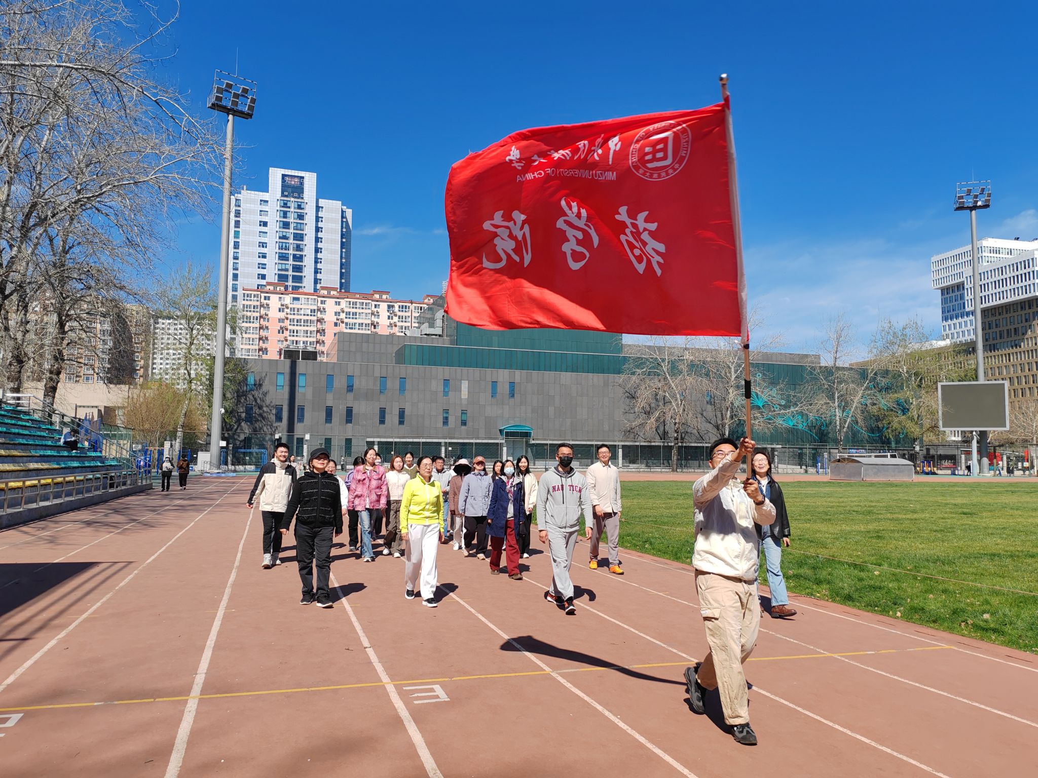 这里,老师同学三五成群但不开组会,不用PPT,更没有论文、数据、实验,只有春光、笑脸和一群“跑出圈”的师生,以快走或慢跑打卡2KM,我们看看谁才是真·体力·王者。