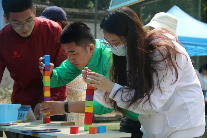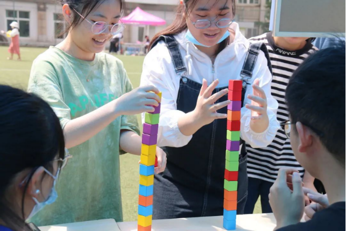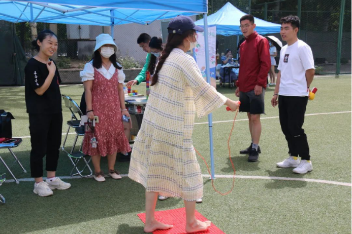 本次活动遵循“放下包袱,放松心情”的原则,设计了一系列小游戏,包括“指压板跳绳”、“搭积木挑战”等趣味比赛,让同学们真正体会到“身与心”的放松。