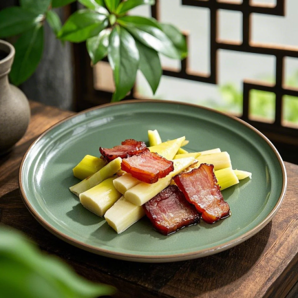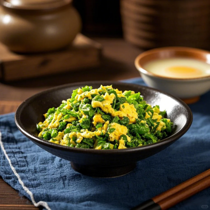 荠菜炒鸡蛋、竹笋炒腊肉、清炒菠菜